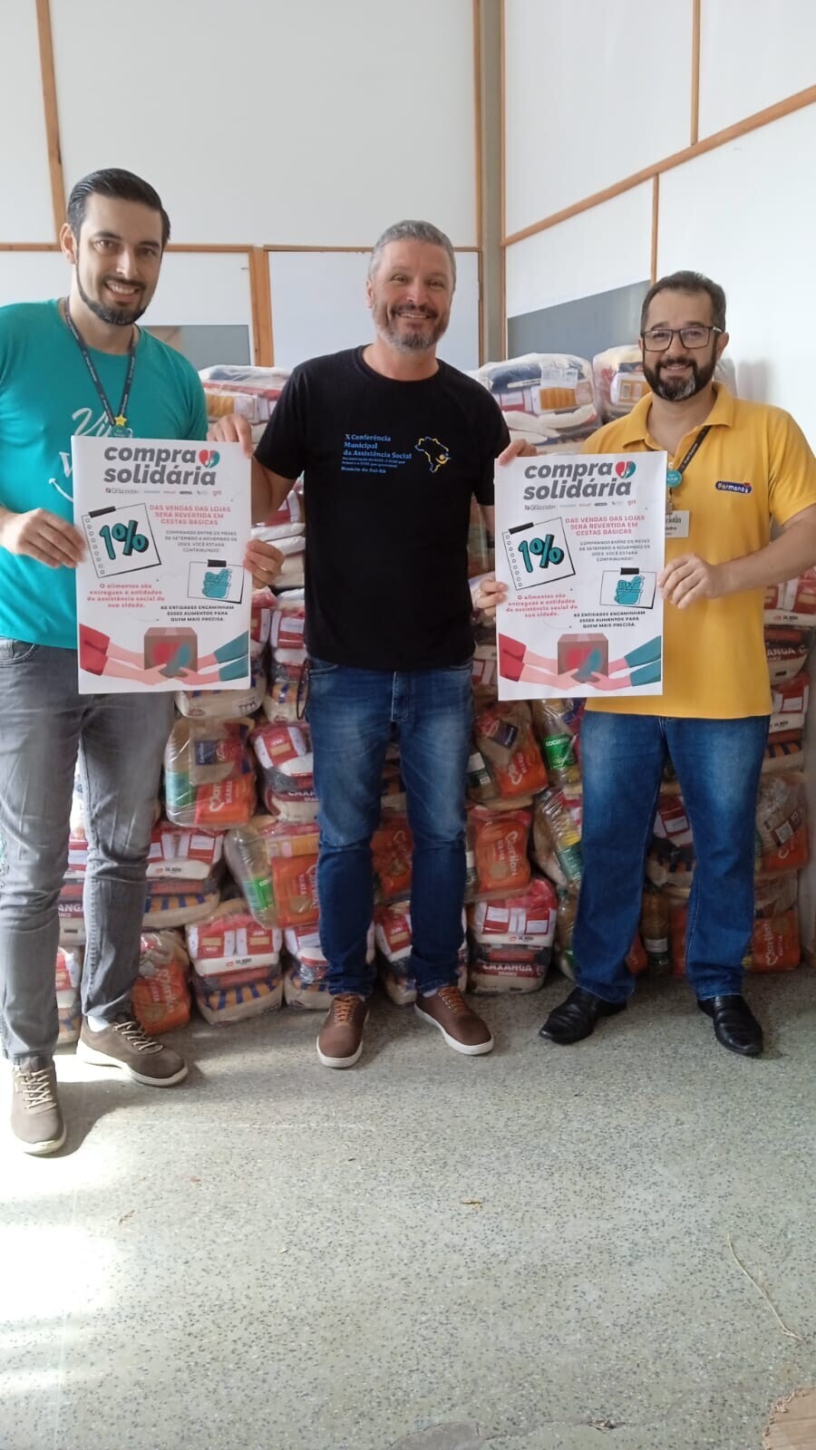 O Secretário Municipal de Assistência Social, Everson Sobreiro Müller recebeu, em nome da Administração Municipal, uma doação de oitenta cestas básicas. A entrega foi realizada pelo gerente da loja Grazziotin de Rosário do Sul, Fabiano Ramos e pelo gerente da loja Por Menos, Leandro Santos da Silva, que também pertence ao grupo Grazziotin (GZT). A doação foi fruto da Campanha “Compra Solidária “, onde 1% das vendas, do grupo Grazziotin em Rosário do Sul, foi revertida em Cestas Básicas.