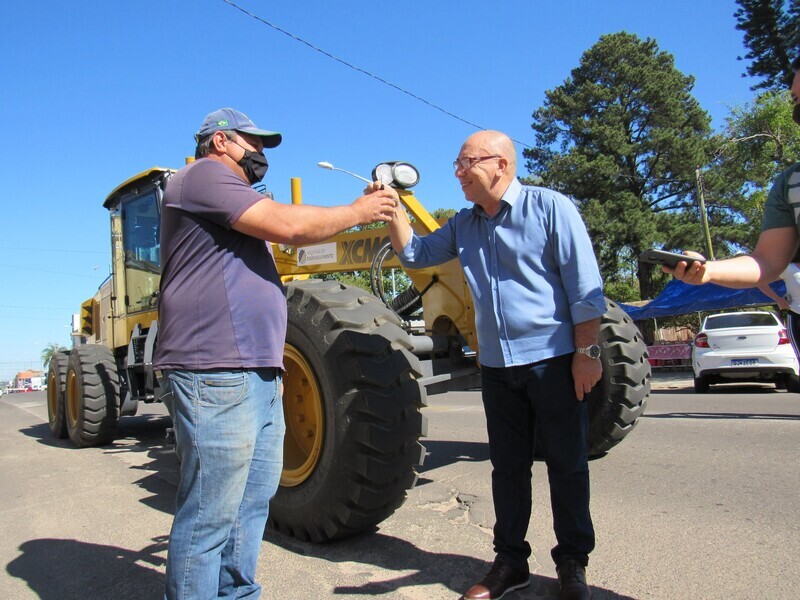 Na manhã desta sexta-feira, 22 de outubro, o Prefeito Vilmar Oliveira recebeu à entrega das chaves de uma Motoniveladora XCMG de 193cv. A moto niveladora é oriunda do Ministério do Desenvolvimento Regional no carácter de doação ao município, com indicação do Senador, Luiz Carlos Heinze (PP), no qual foi representado na oportunidade pelas assessoras de gabinete do Vereador, Alisson Sampaio (PP), Bruna Souza, Renata Santos, Aline Oliveira.