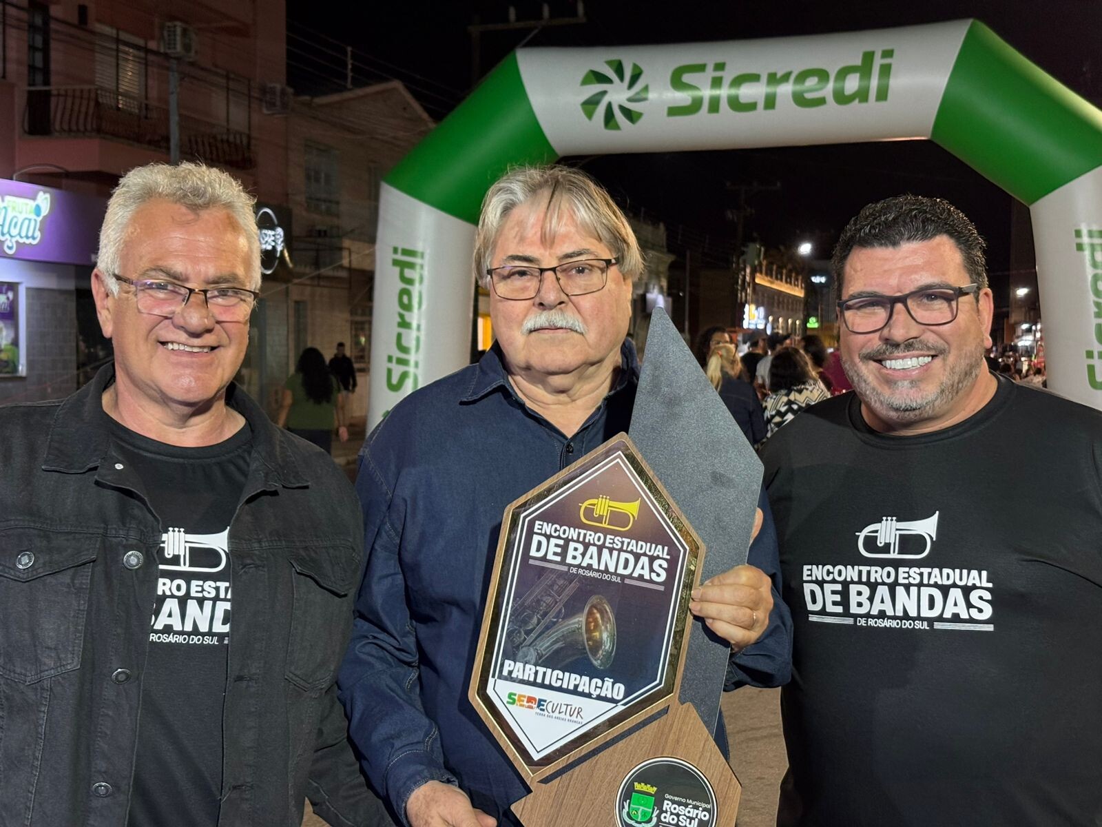 Durante o encontro, foi prestada uma homenagem ao ex-secretário de Turismo, Baltazar Dias, reconhecido por seu trabalho em prol da valorização cultural das bandas e do desenvolvimento artístico de Rosário do Sul.