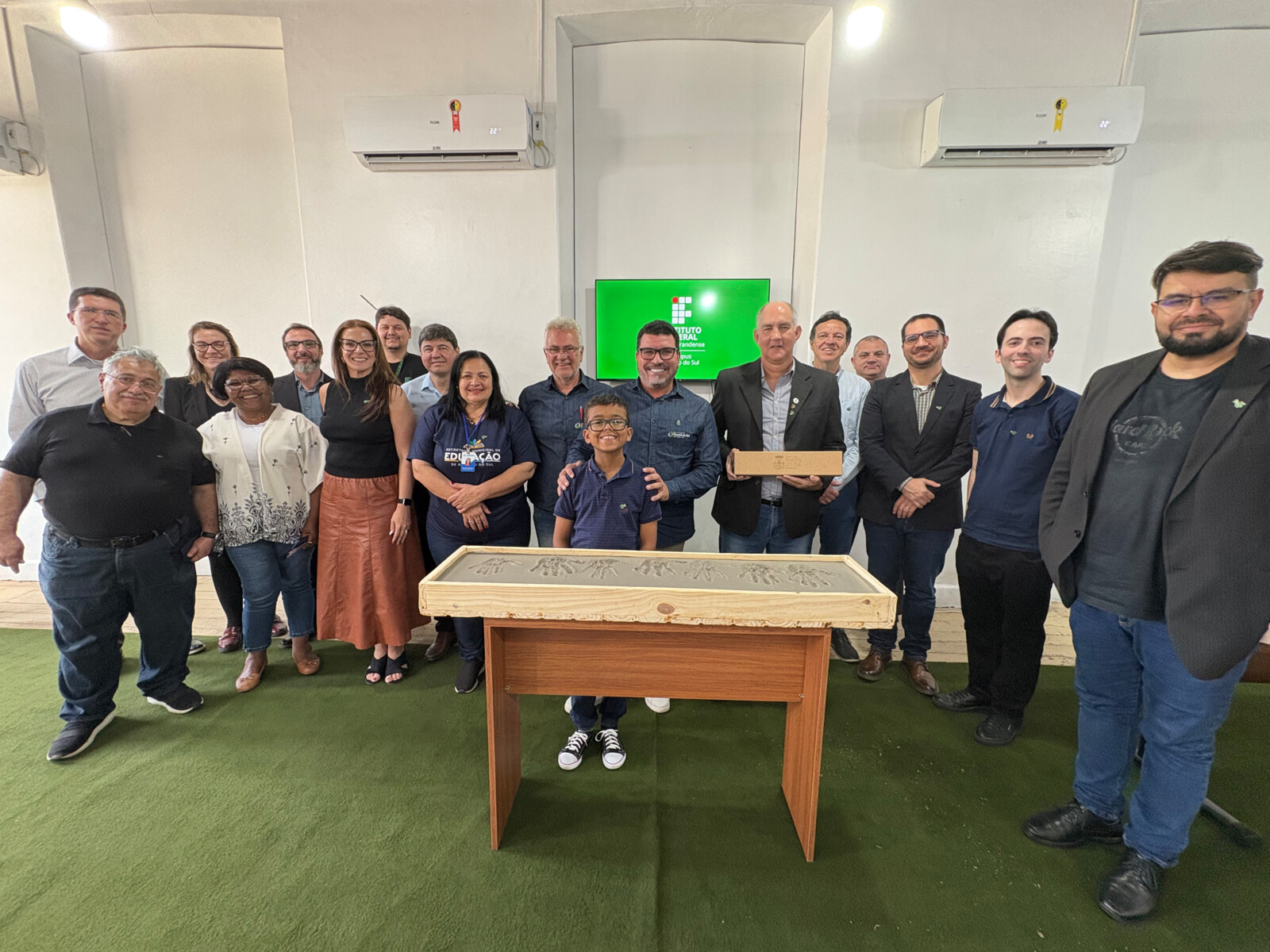Como símbolo desse marco, o prefeito Marcos Paulo Silva da Luz, o reitor Carlos Jesus Anghinoni Corrêa, o vice-prefeito Luis André Sasso, o presidente da Câmara de Vereadores Gilson Alves, a Secretária da Educação Sandra Beatriz, o representante do IF Sul Eliezer Oliveira, e o jovem Pedro Girard vda Rosa, gravaram as mãos em uma peça de concreto, gesto que representou a união de esforços entre o município e a instituição na construção de um novo futuro para Rosário do Sul. A peça será transformada em um memorial permanente no campus do IFSul, eternizando o início dessa parceria histórica.
