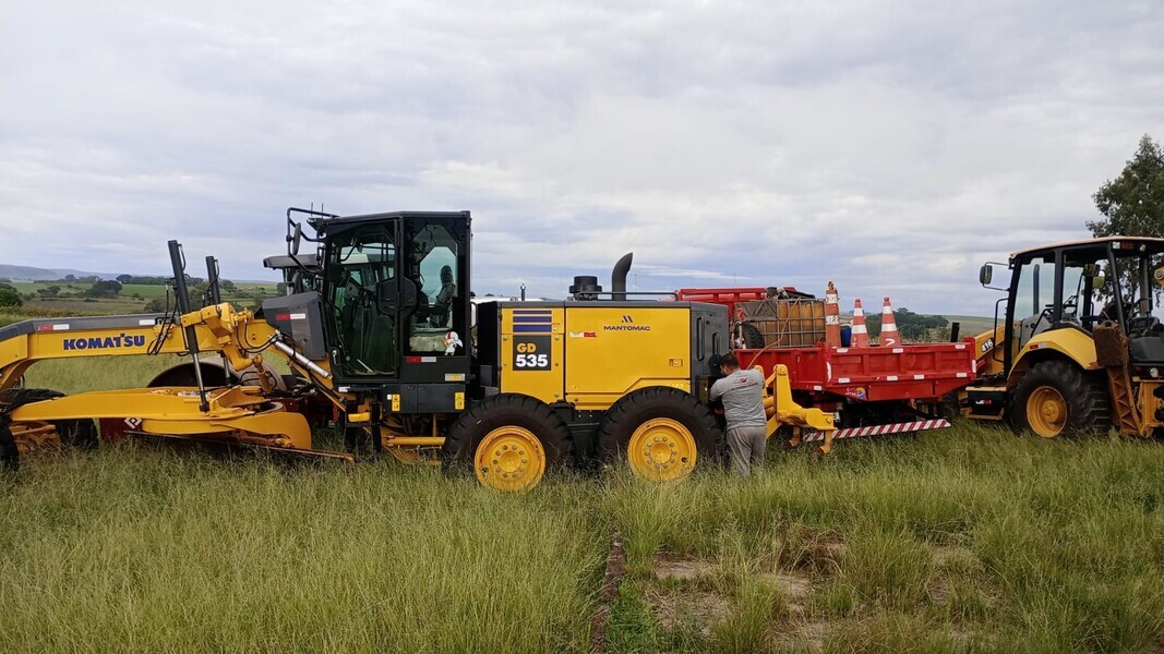 O maquinário está neste momento no Rincão dos Menezes onde começará os trabalhos assim que houver estabilização do tempo.