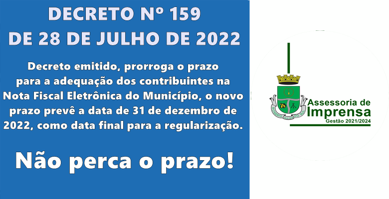 DECRETO Nº 159, DE 28 DE JULHO DE 2022