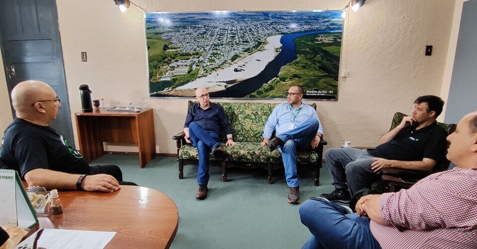 O Prefeito Municipal, Vilmar Oliveira, e o Vice-Prefeito, Eduardo Ustra Ribeiro, receberam no gabinete, nesta manhã terça-feira (14), os representantes da Empresa CMPC, Daniel Andriotti, Gianlouis Zulcheto e Loivo Copetti.